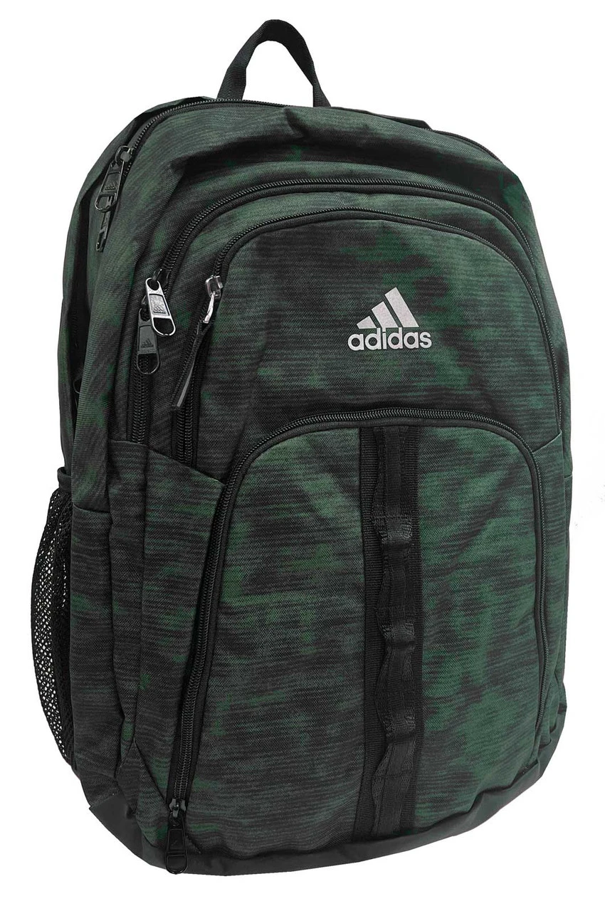 Adidas Prime 6 5-Pocket Laptop Backpack, Static Wash Green Oxide/Solid Black, 5155180. When you need a lot of space, this extra-large backpack from adidas has you covered. Made of durable, woven material, it has plenty of pockets and a laptop sleeve to keep you organized. Loadspring shoulder straps make carrying heavy books and gear more comfortable. 100% Recycled Polyester