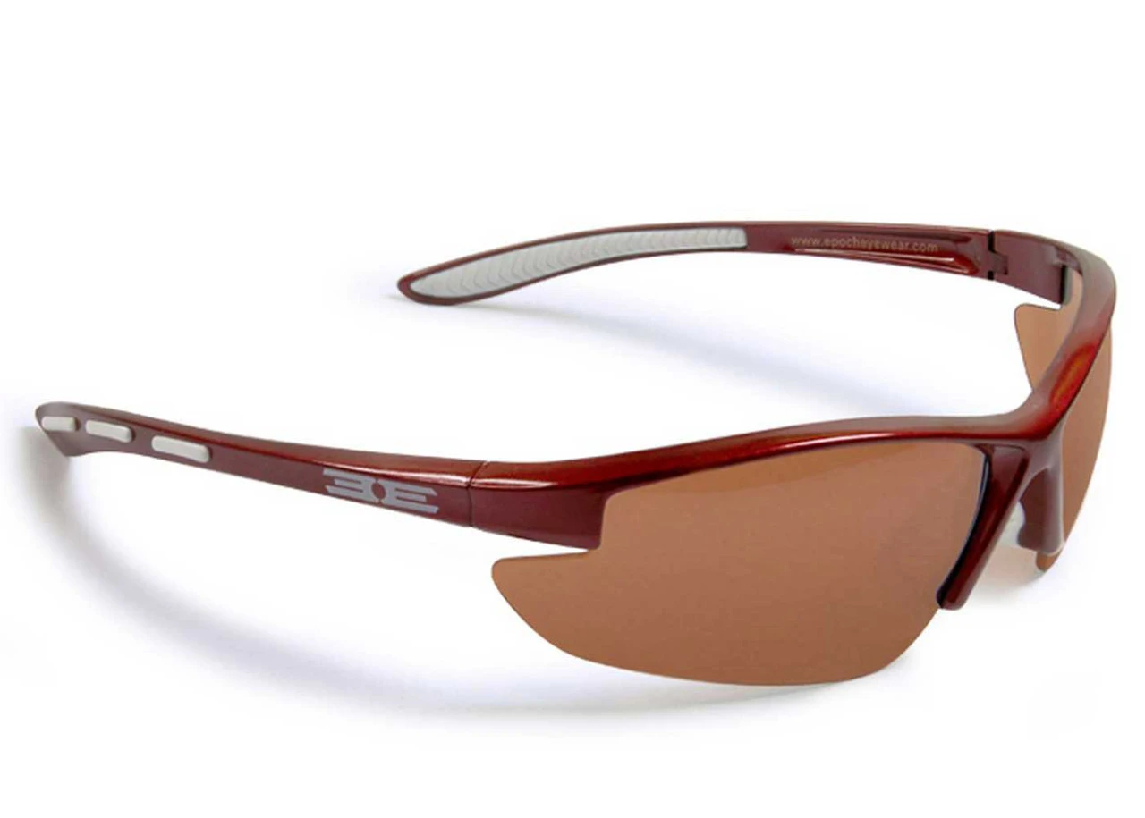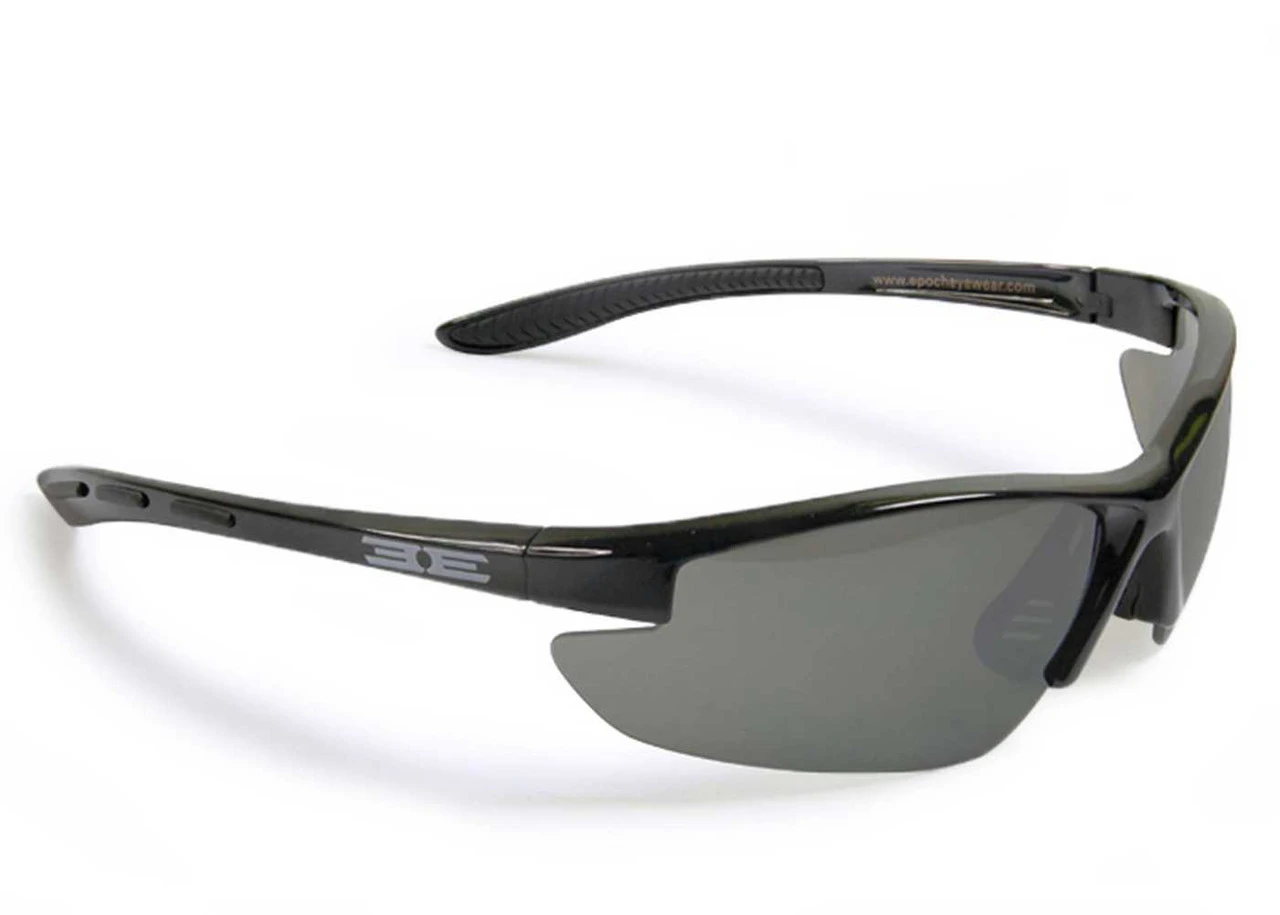 Epoch Eyewear Epoch 5 Sm-Med Faces Sunglasses, Frame and Lens Choices. Epoch5. The Epoch 5 features a classic lightweight sport frame designed to fit small to medium faces. In a variety of colors it features a variety of rubber accents on the ear and nose piece to ensure a perfect fit. 100% UVA & UVB protective lenses. Lenses are shatterproof 100% UVA/UVB protective polycarbonate. Rubber nose pieces prevent slipping. 2 Lens Choices: Smoke Lenses are great in bright conditions or for eyes sensitive to the sun. Amber driving lenses are great in low light conditions, they increase clarity and relax the eyes. 100% UVA/UVB protection. Lenses exceed ANSI rating. Light weight frames. Epoch5