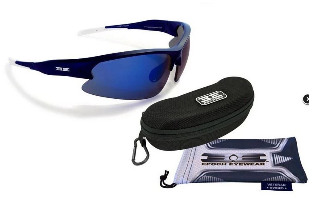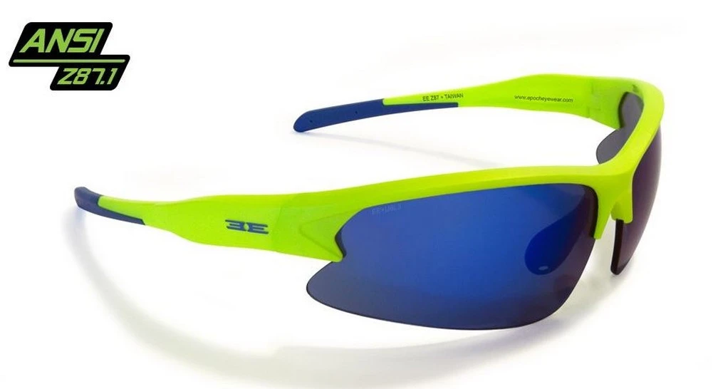 Epoch Eyewear Epoch Primo TR-90 NZZ Frame Sunglasses 2 Color Choices. EpochPrimo. The Epoch PRIMO is equipped with Grilamid TR-90 NZZ frames. Using the highest quality TR-90 makes this style not only extremely lightweight but extremely durable. Featuring inlayed rubber that insures a perfect fit, the Epoch PRIMO frames and lenses meet or exceed ANSI Z87.1 impact standards for complete safety and durability. Comes with an Epoch hard case and limited edition Epoch bag. Color: Black/White Frame with Navy Blue Mirrored Lens or Lime Green/Royal Frames with Mirrored Navy Blue Lens. EpochPrimo