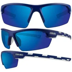 Epoch Link Sport Sunglasses, EE8258. Blue and White frames with Polarized Blue Mirror lenses. The Epoch Link is an original design from Epoch Eyewear. Shatterproof polycarbonate lenses for maximum protection. The frame includes the most overall inlayed rubber of any of our styles to ensure a perfect fit and durability. These features make this one of our favorite styles. Mirror lenses are constructed by applying a reflective coating to a smoke lens base. These unique products deliver the same protection as smoke lenses but have the added benefits of enhanced color perception while reducing glare, all due to the addition of the color reflective coating. Ideal for full-sunlight, snow, and water-reflective conditions. Light transmission 10-13% depending on reflective coating applied. Meets or Exceeds ANSI Z87.1 Standards. Epoch Eyewear is a Veteran owned and operated company. We are proud to be a part of the Veteran community and build a company that provides jobs and great products. EE8258