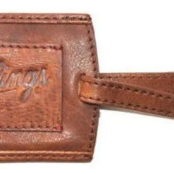 Easily identify your luggage on the airport conveyor with this handsome Rawlings leather luggage tag. Crafted of top quality natural vegetable tanned leather. The warmer amber tones are achieved through the vegetable tanning process and hand burnished treatments that are applied to the final product. Snap closure and embossed Rawlings logo detail. Color: Brown. V616-202