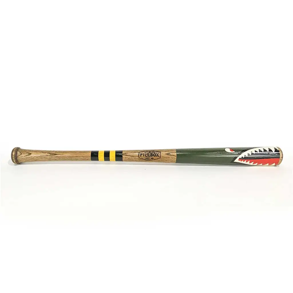 The “Shark Bat” is an Ash wood baseball bat painted to honor the nose art on Vintage warplanes that flew countless missions over the years to keep our nation safe. Iconic Americana…as American as Baseball. Every Pillbox artist baseball bat is crafted and painted at the Pillbox shop in Minnesota.