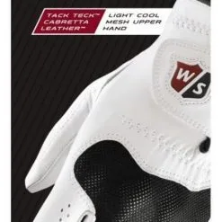 The Wilson Staff Men’s Conform Glove is a stylish, innovative glove perfect for the golfer seeking comfort and breathability. The premium Abyssinian cabretta leather has 3M Scotch guard protection for softness round after round. The performance mesh on the knuckles and palm dissipates heat and moisture.. Color: White. WGJA00302